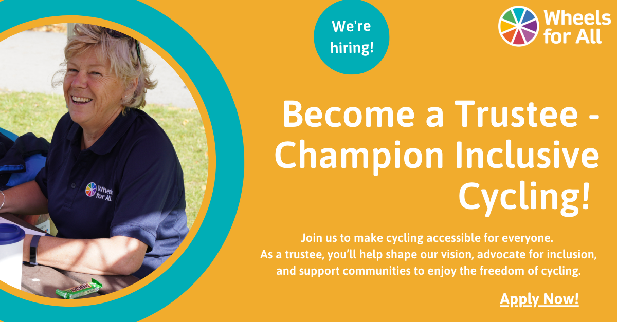 - Or alternative formats, send a short video/audio/cover letter to: recruiting@wheelsforall.org.uk with the subject line Trustee Application.